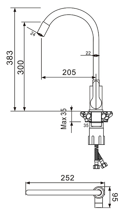 Смеситель WesnaArt EKO EKO05-141 предназначен для подачи горячей и холодной воды в кухонных помещениях. Модель оснащена высоким поворотным изливом, керамическим картриджем, который обеспечивает плавный ход рычага смесителя, контроль и точность при выборе напора и температуры воды. Аэратор фильтрует примеси и создает мягкую струю без брызг. Корпус выполнен из высококачественной нержавеющей стали, отличающейся прочностью, долговечностью и устойчивостью к коррозии. В комплект поставки входят смеситель, гибкая подводка и крепления. Особенности: