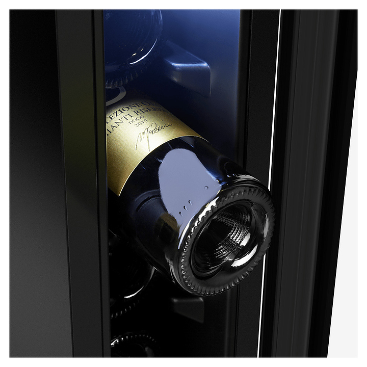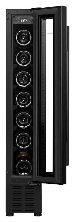 Винный шкаф Maunfeld MBWC-20S7 предназначен для хранения при оптимальных условиях и предпродажной демонстрации бутилированного вина различных сортов в барах, ресторанах, специализированных магазинах, подсобных складских помещениях, а также домашних условиях. Модель оснащена холодильной камерой с правосторонней распашной дверью, длинной уплощенной вертикальной рукояткой, 7 уровнями интегрированных направляющих для бутылок, расположенной внутри камеры панелью управления с функциональными сенсорными клавишами и светодиодным дисплеем с белой подсветкой индикации. Корпус выполнен из стали с антикоррозийным покрытием черного цвета, дверь с полным фронтальным остеклением без винтового крепежа из прозрачного стекла с дымчатой тонировкой, внутренняя облицовка камеры черного цвета. В комплект поставки входят крепеж для рукоятки, инструкция по эксплуатации, гарантийный талон и заводская упаковка. Особенности: