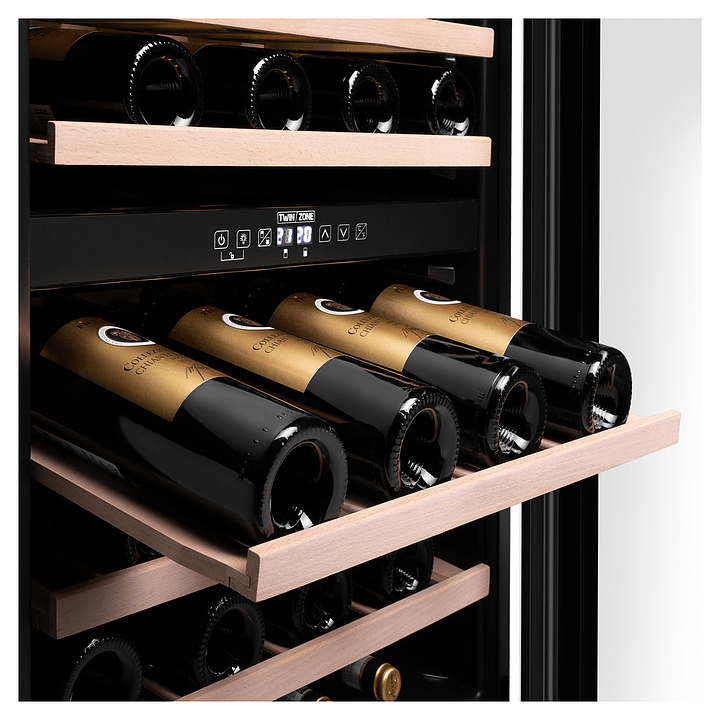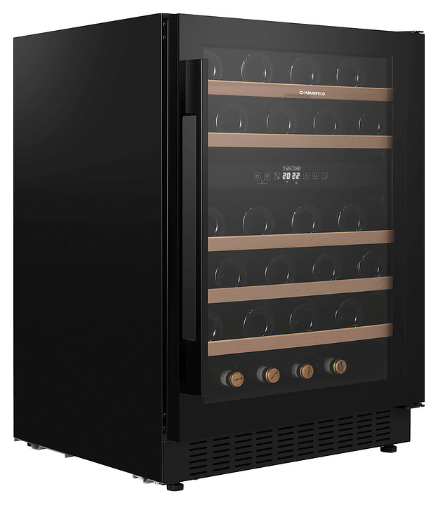 Винный шкаф Maunfeld MBWC-135D46 предназначен для хранения при оптимальных условиях и предпродажной демонстрации бутилированного вина различных сортов в барах, ресторанах, специализированных магазинах, подсобных складских помещениях, а также домашних условиях. Модель оснащена холодильной камерой с 2 температурными зонами, правосторонней распашной дверью, длинной уплощенной вертикальной рукояткой, расположенной внутри камеры панелью управления с сенсорными функциональными клавишами и 2 светодиодными дисплеями с белой подсветкой индикации. Корпус выполнен из стали с антикоррозийным покрытием черного цвета, дверь с полным фронтальным остеклением без винтового крепежа из прозрачного стекла с дымчатой тонировкой, внутренняя облицовка камеры черного цвета, полки – из массива буковой древесины. В комплект поставки входят 5 съемных полок с направляющими для размещения бутылок, крепеж для рукоятки, инструкция по эксплуатации, гарантийный талон и заводская упаковка. Особенности: