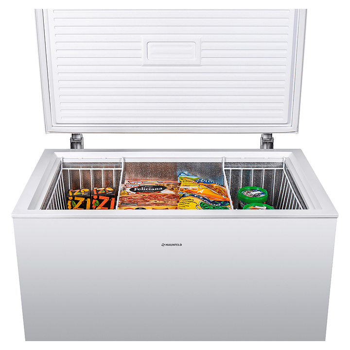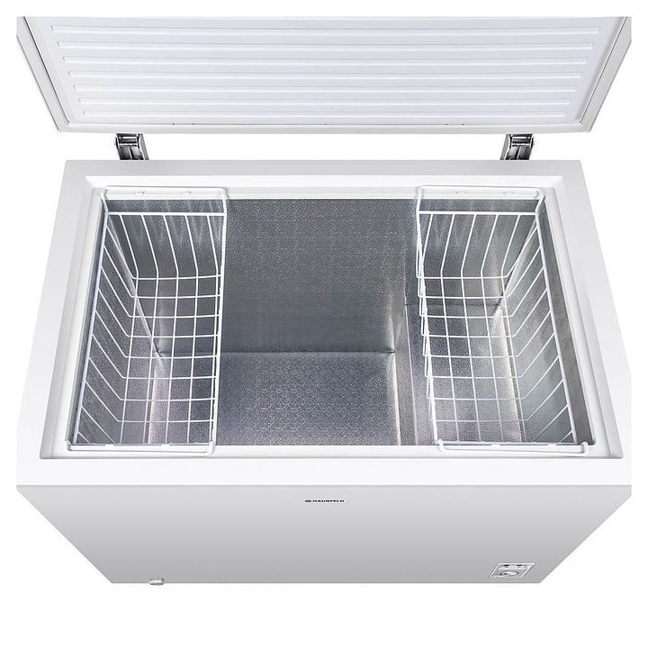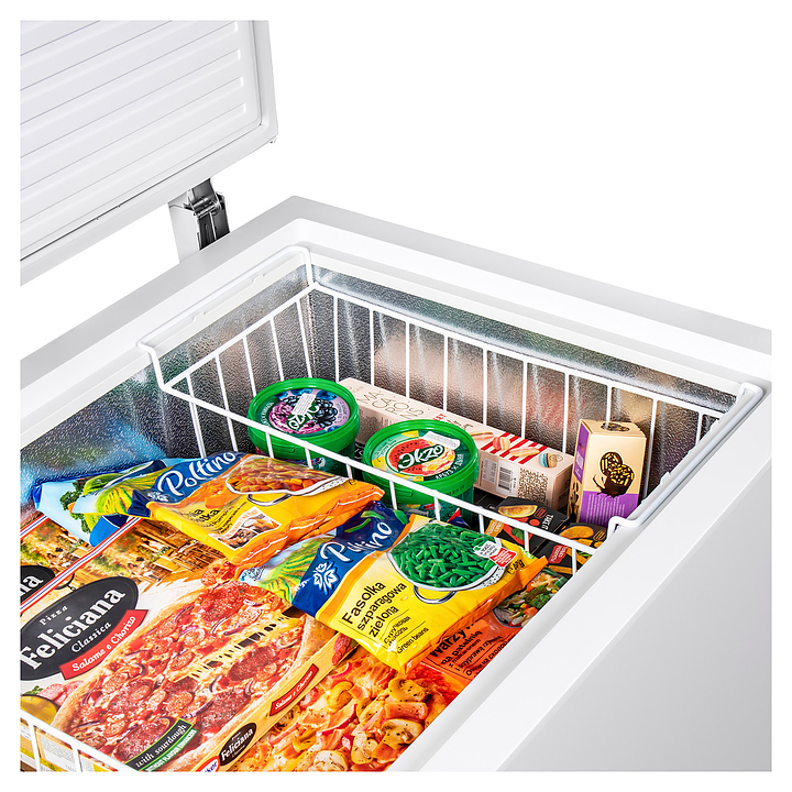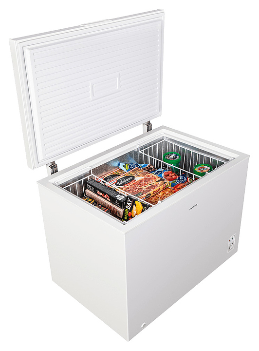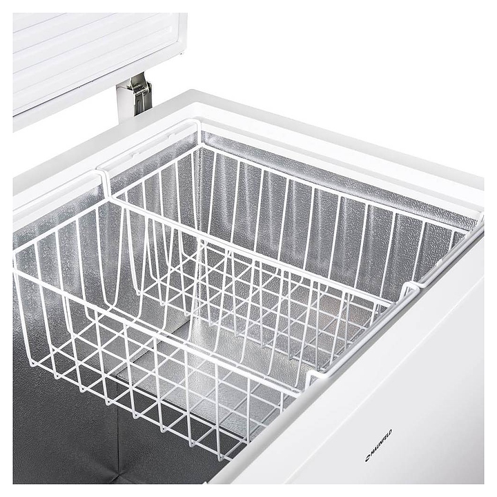 Морозильный ларь Maunfeld MFL300W предназначен для охлаждения, заморозки, кратковременного и длительного хранения пищевых продуктов таких как мясо, овощи и мороженое в гостиничных комплексах, офисах и домашних условиях. Модель оснащена горизонтально ориентированной рабочей камерой с откидной дверью сверху, кабелем питания с вилкой и расположенной в нижней части фронтальной стенки электромеханической панелью управления. Корпус выполнен из металла с антикоррозийным покрытием белого цвета, внутренняя облицовка камеры – из антибактериального пластика с текстурной поверхностью легкой очистки серебристого оттенка. В комплект поставки входят 2 съемные решетчатые корзины, форма для льда, инструкция по эксплуатации, гарантийный талон и заводская упаковка. Особенности: