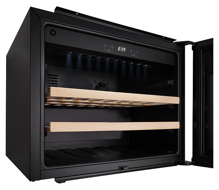 Винный шкаф Korting KFW 501 SL GN предназначен для охлаждения, хранения при оптимальных условиях и демонстрации бутилированного вина различных сортов в барах, ресторанах, специализированных магазинах, подсобных складских помещениях, а также в домашних условиях. Модель оснащена холодильной камерой с 2 выдвижными полками, распашной дверью, сенсорным управлением и обзорным окном. Корпус выполнен из нержавеющей стали, окно - из тонированного стекла, полки – из бука. Особенности: