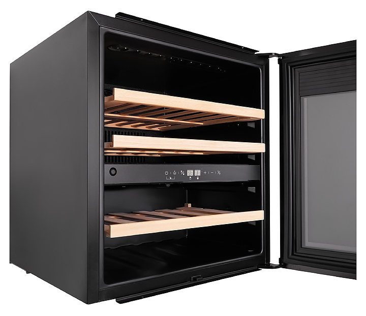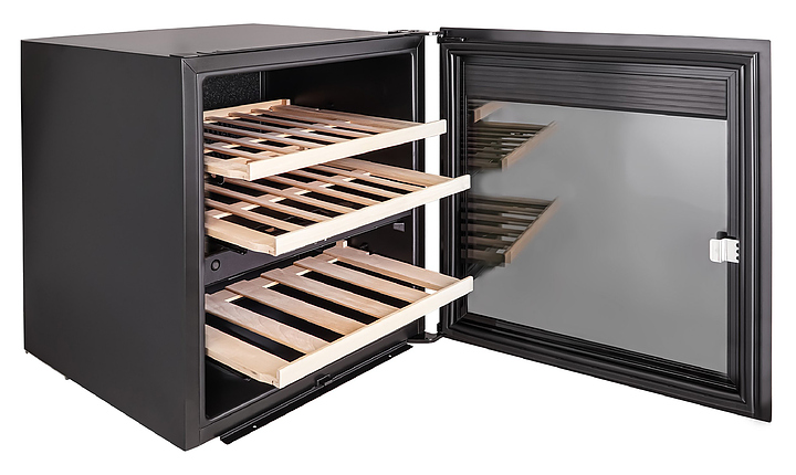 Винный шкаф Korting KFW 604 DB GN предназначен для охлаждения, хранения при оптимальных условиях и демонстрации бутилированного вина различных сортов в барах, ресторанах, специализированных магазинах, подсобных складских помещениях, а также в домашних условиях. Модель оснащена холодильной камерой с 3 выдвижными полками, распашной дверью, сенсорным управлением и обзорным окном. Корпус выполнен из нержавеющей стали, окно - из тонированного стекла, полки – из бука. Особенности: