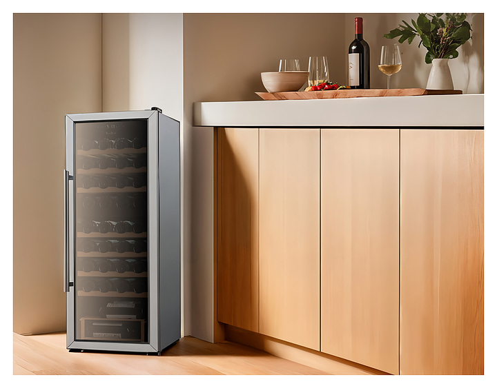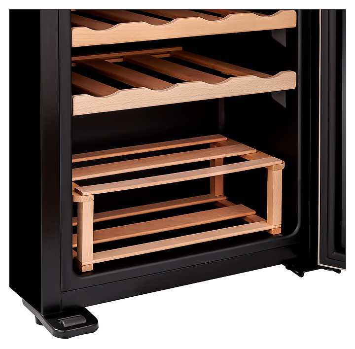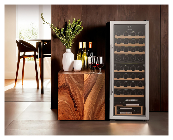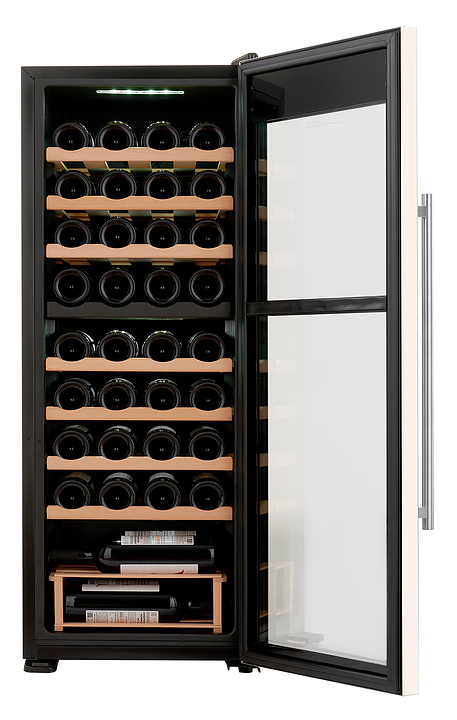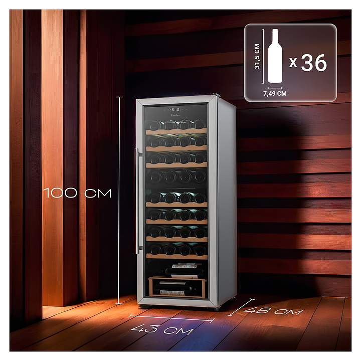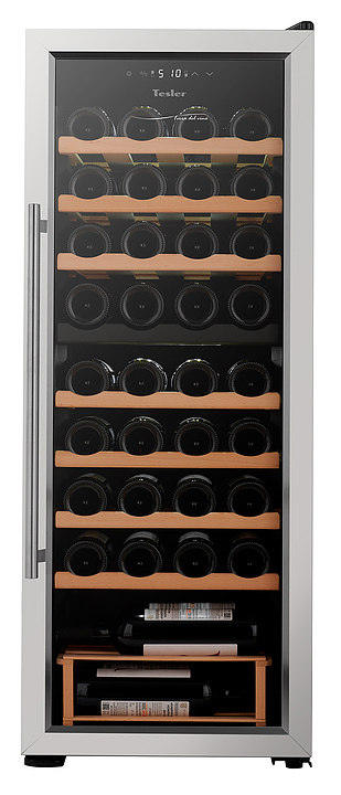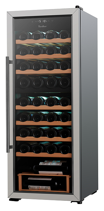 Винный шкаф TESLER CWC-360 предназначен для охлаждения, хранения при оптимальных условиях и демонстрации бутилированного вина различных сортов в барах, ресторанах, специализированных магазинах, подсобных складских помещениях, а также в домашних условиях. Модель оснащена холодильной камерой с 7 полками и 1 подставкой, удобной ручкой, дисплеем, распашной дверью и электронным управлением. Полки и подставка выполнены из дерева, дверца - из двойного стекла с зеркальной поверхностью, рамка - из нержавеющей стали. Особенности: