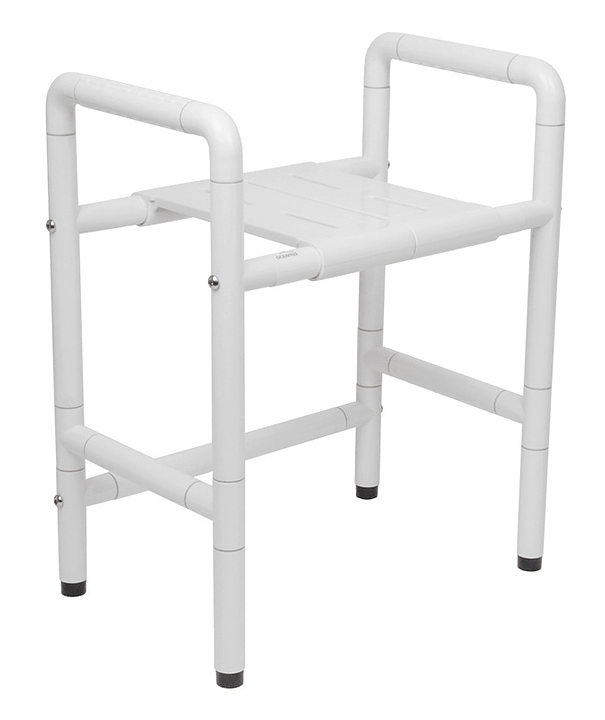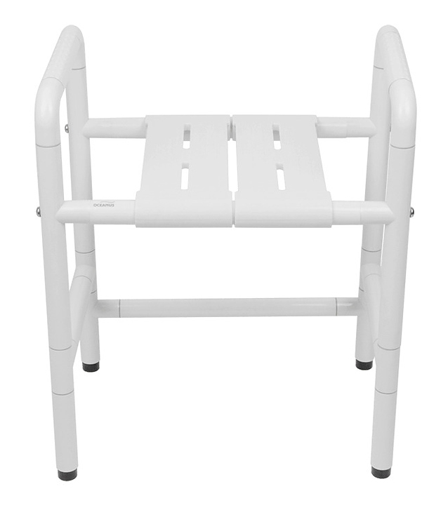 Стул для ванны Oceanus С40 используется в учреждениях здравоохранения, санаторных и реабилитационных центрах или на дому для оборудования ванной комнаты или душевой для самостоятельного (или с посторонней помощью) осуществления гигиенических процедур для пожилых людей, инвалидов, людей с заболеваниями опорно-двигательного аппарата и для пациентов, которые проходят процесс реабилитации после перенесенных операций, травм или тяжелых заболеваний. Изделие выполнено из устойчивой к коррозии нержавеющей стали AISI 304 и ударопрочного ABS пластика. Дополнительные характеристики: