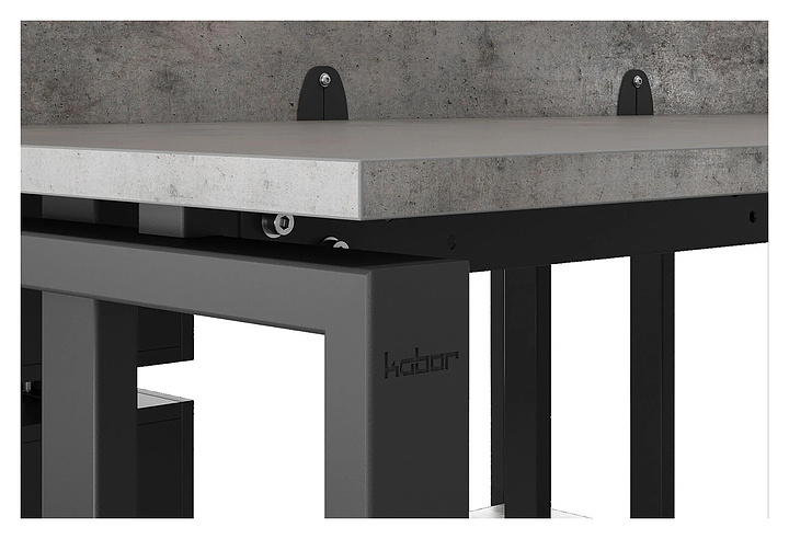 Офисный стол Кобор O1/2-120/160 black/chicago на 2 рабочих места используется в офисных помещениях и кабинетах руководителей. Модель оснащена O-образными опорами. Каркас и опоры выполнены из металла, выкрашенного в цвет черный муар (RAL9005), столешница – из ламинированной древесно-стружечной плиты (ЛДСП) цвета бетон чикаго (F186 ST9). Дополнительные характеристики: