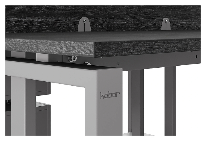 Офисный стол Кобор O1/2-100/120 aluminum/glazed на 2 рабочих места используется в офисных помещениях и кабинетах руководителей. Модель оснащена O-образными опорами. Каркас и опоры выполнены из металла, выкрашенного в цвет алюминиевый металлик (RAL9006), столешница – из ламинированной древесно-стружечной плиты (ЛДСП) цвета черный дуб (H3178 ST37). Дополнительные характеристики: