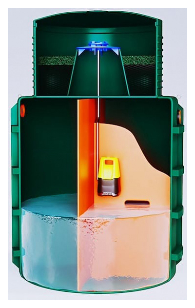 Станция очистки EvoStok Bio5R S предназначена для обеспечения грубой механической очистки и осветления сточных вод посредством трехкамерного самотечного септика и последующей аэробной биологиической очисткой на интегрированном капельном биофильтре с двухкомпонентной полимерной биозагрузкой. Цилиндрическая форма обеспечивает необходимую жесткость и подходит для любых типов грунтов и гидрогеологических условий. Биологическая очистка на встроенном биофильтре происходит в течение рабочего цикла и включает несколько стадий: увлажнение биологической загрузки, усвоение растворенных и взвешенных веществ благодаря прикрепленному биоценозу, минерализацию и отделение избыточного активного ила и отмерших популяций бактериологической пленки. Корпус выполнен из полиэтилена PE. В комплект поставки входит насос. Особенности: