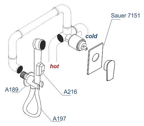 Встраиваемый комплект для биде со шлангом Wasserkraft Sauer 7100 A71097 золото глянцевое