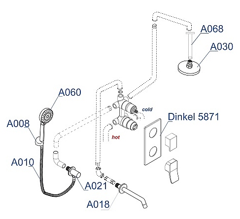 Встраиваемый комплект для ванны Wasserkraft Dinkel 5800 A175868 хром, никель