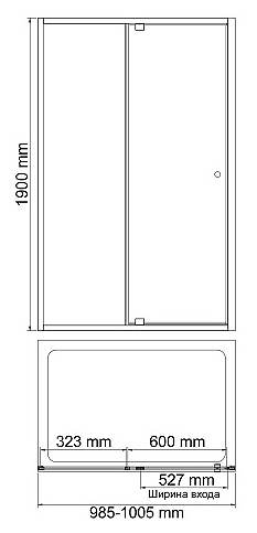 Дверь душевая Wasserkraft Aula 11P12 100х190 см, в нишу, распашная, профиль хром