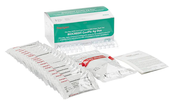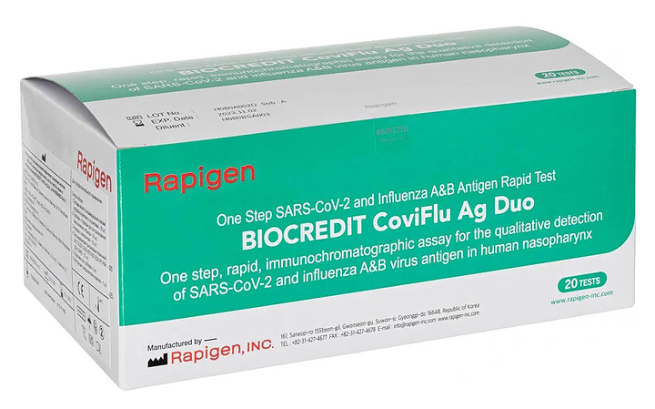 Набор экспресс-тестов на COVID-19 и грипп A/B RapiGEN BIOCREDIT COVIFLU AG DUO (20 шт.)