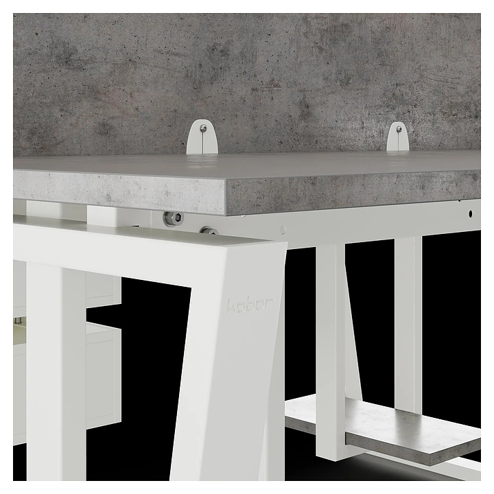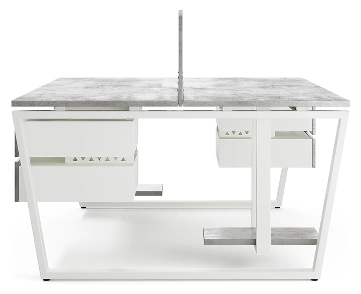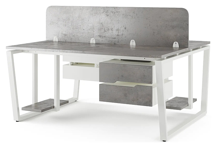 Офисный стол Кобор OTR/2-100/160 white/chicago на 2 рабочих места используется в офисных помещениях и кабинетах руководителей. Модель оснащена опорами в форме обратной трапеции. Каркас и опоры выполнены из металла, выкрашенного в цвет белый муар (RAL9016), столешница – из ламинированной древесно-стружечной плиты (ЛДСП) цвета бетон чикаго (F186 ST9). Дополнительные характеристики: