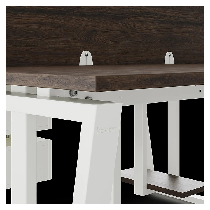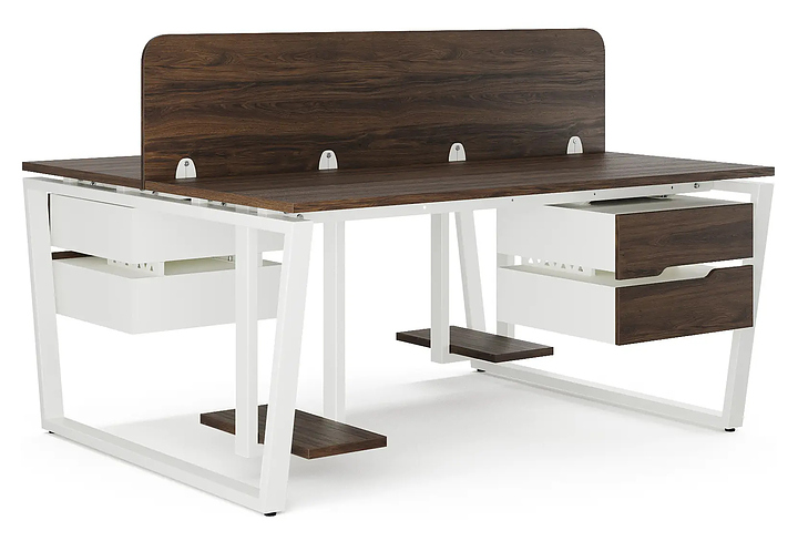 Офисный стол Кобор OTR/2-180/140 white/charlston на 2 рабочих места используется в офисных помещениях и кабинетах руководителей. Модель оснащена опорами в форме обратной трапеции. Каркас и опоры выполнены из металла, выкрашенного в цвет белый муар (RAL9016), столешница – из ламинированной древесно-стружечной плиты (ЛДСП) цвета дуб чарльстон (H3154 ST36). Дополнительные характеристики: