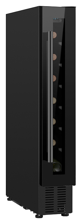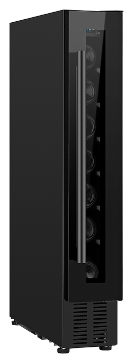 Винный шкаф Weissgauff WWC-7 B предназначен для хранения при оптимальных условиях и демонстрации бутилированного вина различных сортов в барах, ресторанах, специализированных магазинах, складских помещениях, а также домашних условиях. Модель оснащена монотемпературной холодильной камерой с 7 уровнями интегрированных направляющих для размещения бутылок, правосторонней перенавешиваемой распашной дверью на внешних петлях, длинной вертикальной рукояткой, цокольной воздушной решеткой, обзорным остеклением, кабелем питания с вилкой, расположенной внутри камеры панелью управления с сенсорными клавишами и светодиодным цифровым дисплеем с голубой подсветкой индикации. Корпус и рукоятка выполнены из металла с антикоррозийным покрытием черного цвета, фронт двери – из закаленного стекла с дымчатой тонировкой, внутренняя облицовка камеры черного цвета. В комплект поставки входят крепеж для рукоятки, инструкция по эксплуатации, гарантийный талон и заводская упаковка. Особенности: