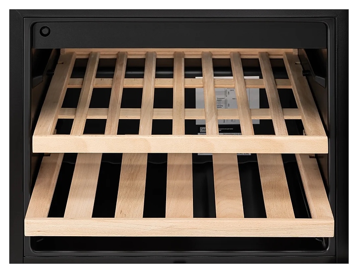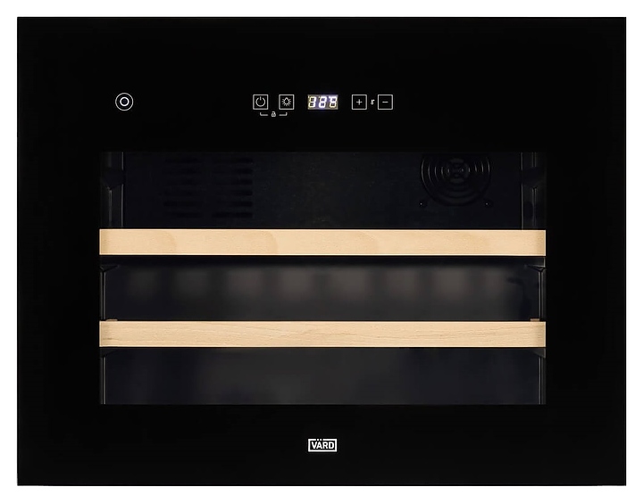 Винный шкаф VARD WCI4SS предназначен для хранения при оптимальных условиях и демонстрации бутилированного вина различных сортов в барах, ресторанах, специализированных магазинах, складских помещениях, гостиницах, а также домашних условиях. Модель оснащена холодильной камерой с 2 независимыми температурными зонами, правосторонней распашной дверью, обзорным остеклением, кабелем питания с вилкой, расположенной в верхней части фронта управления с сенсорными клавишами и светодиодным цифровым дисплеем с белой подсветкой индикации. Корпус выполнен из металла с антикоррозийным покрытием черного цвета, фронт двери – из стекла, полки – из массива буковой древесины. В комплект поставки входят 2 съемные полки с направляющими для размещения бутылок, набор крепежа, инструкция по эксплуатации, гарантийный талон и заводская упаковка. Особенности: