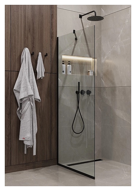 Душевая перегородка TIMO TP-890/03C-8 89х195 см, неподвижная, стекло прозрачное, профиль черный