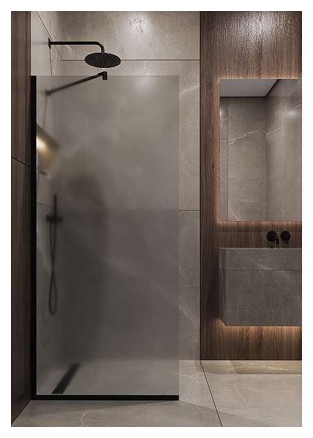 Душевая перегородка TIMO TP-890/03F-8 89х195 см, неподвижная, стекло матовое, профиль черный