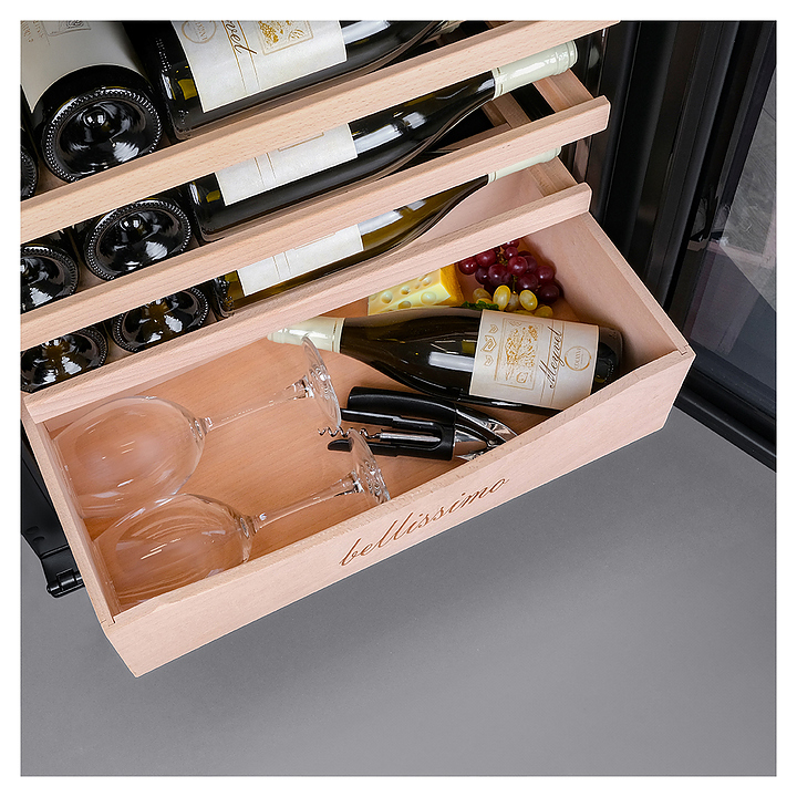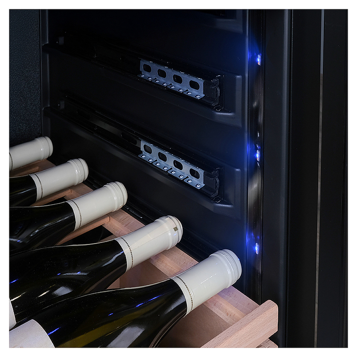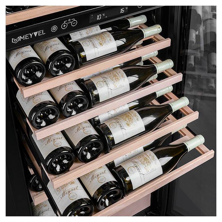 Винный шкаф MEYVEL MV95-KST2 (Slim) предназначен для демонстрации, хранения и создания оптимальных условий для сохранения всех вкусовых свойств вина в бутылках на предприятиях общественного питания, торговли, в барах, ресторанах, специализированных магазинах, частных домах или квартирах. Модель оснащена сенсорной панелью управления, демонстрационным освещением, ручкой и регулируемыми ножками. Угольный фильтр очищает воздух внутри шкафа от посторонних запахов. Корпус выполнен из стали, дверь - из тройного стекла с УФ-фильтром, полки - из массива бука. Особенности: