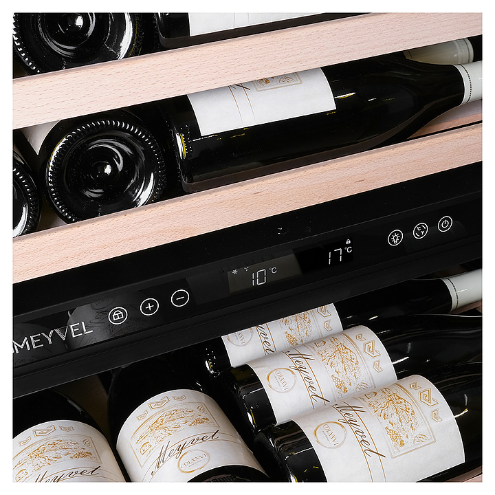 Винный шкаф MEYVEL MV98-KST3 (Slim) предназначен для демонстрации, хранения и создания оптимальных условий для сохранения всех вкусовых свойств вина в бутылках на предприятиях общественного питания, торговли, в барах, ресторанах, специализированных магазинах, частных домах или квартирах. Модель оснащена сенсорной панелью управления, внутренним освещением и ручкой. Угольный фильтр очищает воздух внутри шкафа от посторонних запахов. Корпус, рамка двери и ручка выполнены из стали, дверь - из закаленного стекла с УФ-фильтром, полки - из дерева. Особенности: