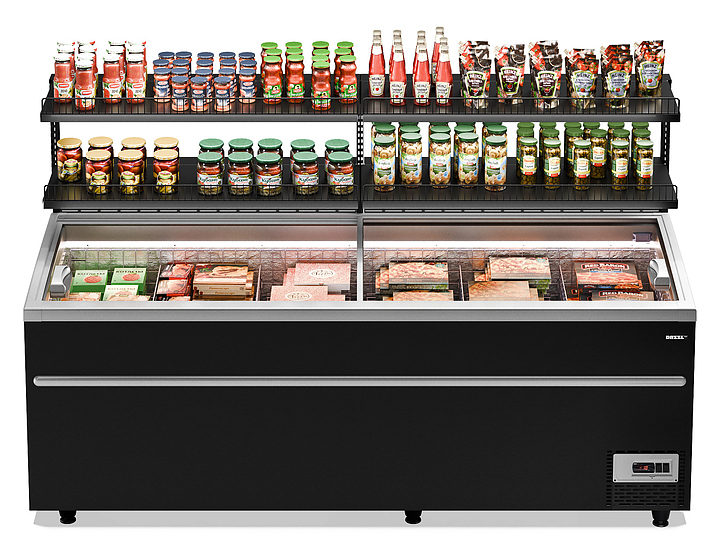 Морозильная бонета Dazzl Astra 190 предназначена для заморозки и хранения продуктов на предприятиях общественного питания и торговли. Модель оснащена энергосберегающей светодиодной подсветкой внутреннего объема и регулируемыми по высоте опорами. В комплект поставки входят проволочные делители, решетки и ценникодержатели. Особенности: