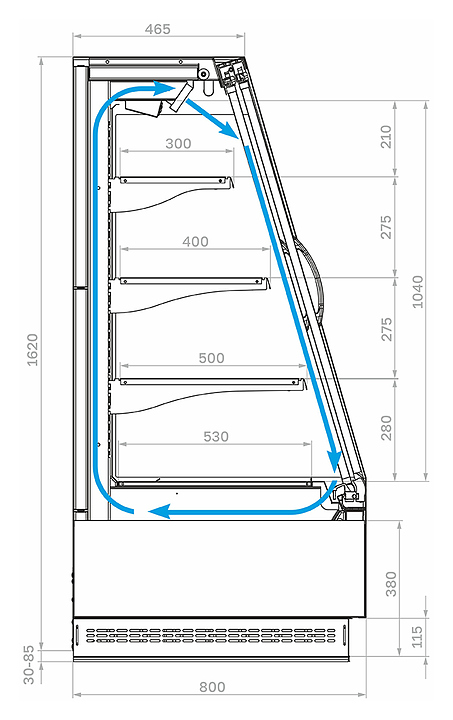 Горка холодильная Carboma F16-08 VV 1,3-1 0030 STANDARD фронт X1 версия 2.0 9006-9005