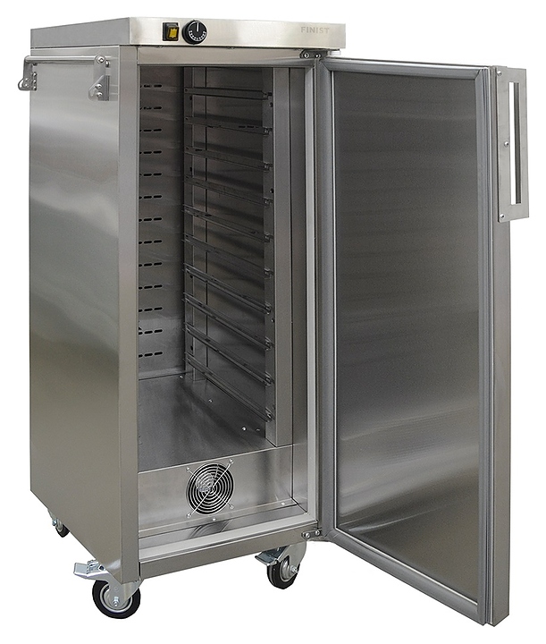Мобильный тепловой шкаф Finist ШТП101.3 используется в кейтеринговых компаниях, на предприятиях общественного питания и торговли для длительного поддержания в горячем состоянии, транспортировки и подачи готовых блюд. Модель оснащена рабочей камерой с 10 уровнями встроеннных направляющих для гастроемкостей, глухой распашной дверью с короткой вертикальной рукояткой и электромеханической панелью управления. Корпус выполнен из высококачественной нержавеющей стали. Особенности: