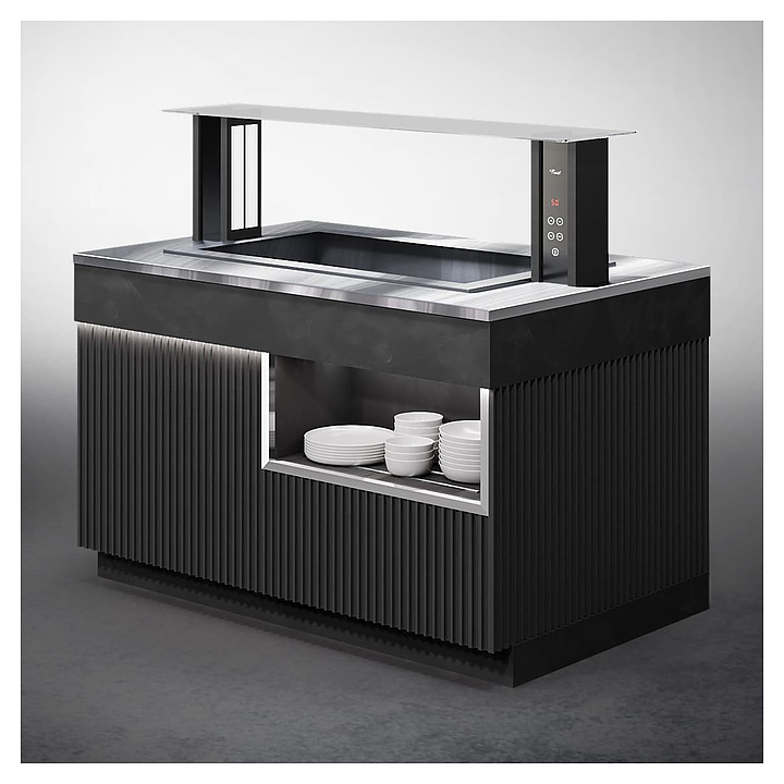 Шведский стол Finist ШСхв1175 используется в гостиницах, на предприятиях общественного питания и торговли для кратковременного хранения, демонстрации и раздачи путем самообслуживания салатов и холодных закусок. Модель оснащена подставкой с встроенным холодильным агрегатом, столешницей с охлаждаемой ванной для размещения гастроемкостей и панелью управления. Столешница выполнена из высококачественной нержавеющей стали, облицовочные панели корпуса – из МДФ с покрытием дизайна «Сидней» черного цвета, верхняя полка – из просветленного стекла. Гастроемкости и посуда не входят в комплект поставки и приобретаются отдельно. Особенности: