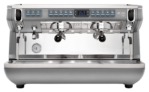 Автоматическая кофемашина Nuova Simonelli Appia Life XT 2gr 220V используется в кофейнях, барах, ресторанах и на других предприятиях общественного питания и торговли для приготовления эспрессо и различных кофейных напитков на его основе. Модель оснащена 2 высокими термокомпенсированными рожковыми кофейными группами, 2 трубками подачи пара, соплом подачи горячей воды, основным выключателем колыбельного типа под основанием прибора, многофункциональным TFT-дисплеем, персональными панелями для каждой группы с нажимными клавишами и светодиодными индикаторами. Фронтальная, задняя и верхняя панели корпуса, сопла, трубки подачи и решетка подставки выполнены из высококачественной нержавеющей стали, бойлер – из меди с термоизоляцией, боковые панели и основание корпуса – из ударопрочного АБС-пластика оттенка серый металлик.