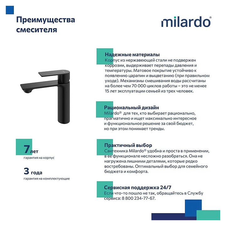 Смеситель Milardo Maze MAZBL00M01 предназначен для подачи горячей и холодной воды в ванных помещениях. Керамический картридж обеспечивает точную регулировку температуры и напора воды за счет особенно плавного хода ручки смесителя. Изделие выполнено из антикоррозийной нержавеющей стали, отличающейся прочностью, долговечностью и устойчивостью к перепадам температур. Комплект поставки: