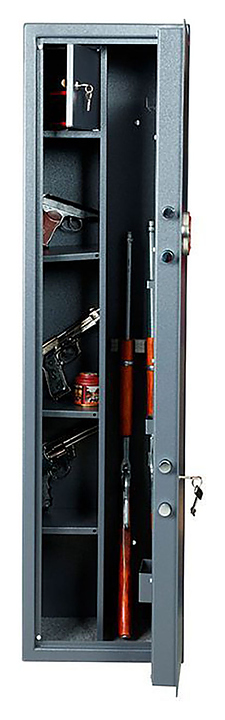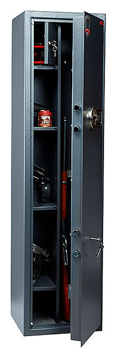 Сейф AIKO Филин 32 EL предназначен для хранения огнестрельного оружия, патронов и принадлежностей. Модель оснащена 1 ключевым и 1 электронным кодовым PS-310/E01 замками в двери, запирающимся патронным отделением, 3 полками, ложементами для ружей и анкерными отверстиями для крепления к стене. Сейф соответствует требованиям МВД. Корпус имеет порошковое покрытие. Дополнительные характеристики: