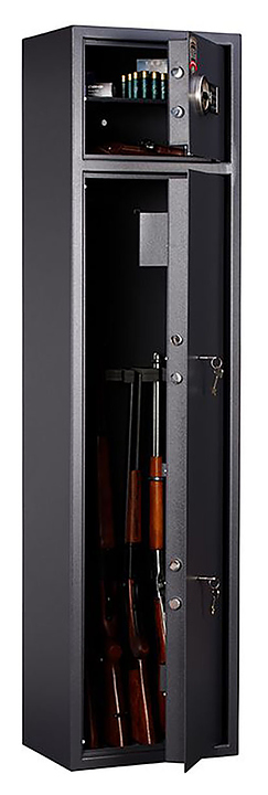 Сейф AIKO Филин 35 EL предназначен для хранения огнестрельного оружия, патронов и принадлежностей. Модель оснащена 2 ключевыми замками в двери, запирающимся на электронный кодовый замок патронным отделением, 1 полкой, ложементами для ружей и анкерными отверстиями для крепления к стене. Сейф соответствует требованиям МВД. Корпус имеет порошковое покрытие. Дополнительные характеристики: