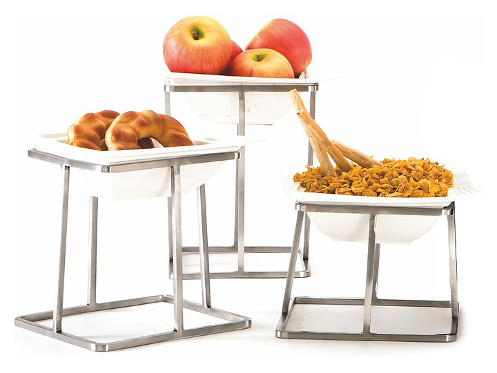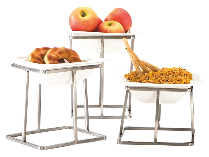Фуршетная подставка P.L. Proff Cuisine Hotelware SBS 9281 используется на предприятиях общественного питания и в домашних условиях для размещения и подачи широкого спектра блюд. Изделие выполнено из нержавеющей стали и керамики.