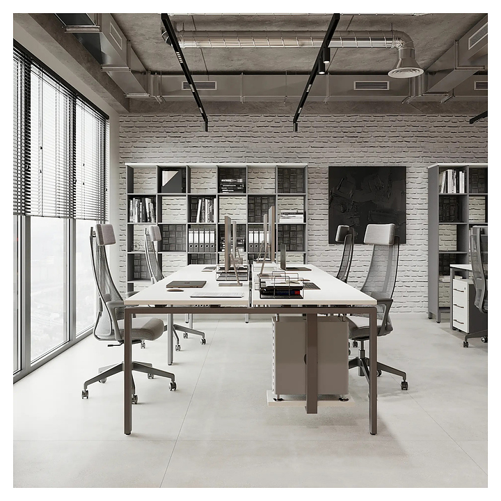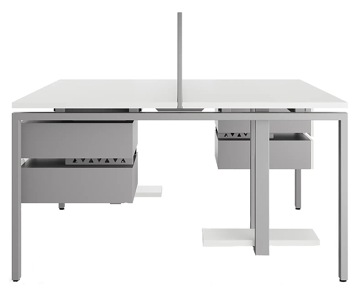 Офисный стол Кобор P/2-120/160 aluminum/premium на 2 рабочих места используется в офисных помещениях и кабинетах руководителей. Модель оснащена П-образными опорами. Каркас и опоры выполнены из металла, выкрашенного в цвет алюминиевый металлик (RAL9006), столешница – из ламинированной древесно-стружечной плиты (ЛДСП) цвета белый премиум (W1000 ST9). Дополнительные характеристики: