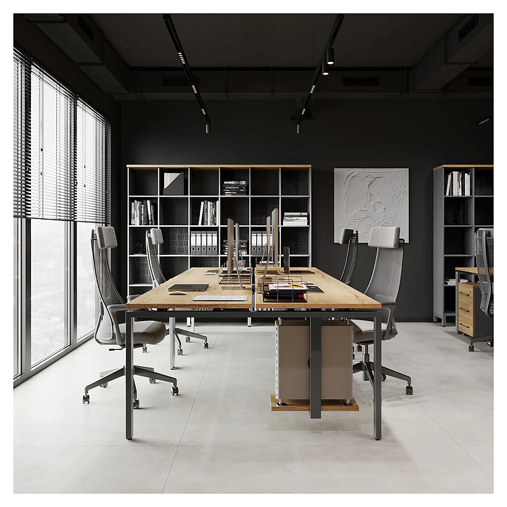 Офисный стол Кобор P/2-100/120 aluminum/natural используется в офисных помещениях и кабинетах руководителей. Модель оснащена П-образными опорами. Каркас выполнен из металла, выкрашенного в цвет алюминиевый металлик (RAL9006), столешница – из ламинированной древесно-стружечной плиты (ЛДСП) цвета натуральный дуб (H1180 ST37). Дополнительные характеристики: