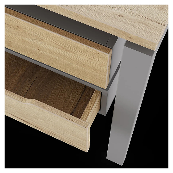 Офисный стол Кобор P/2-160/140 aluminum/natural используется в офисных помещениях и кабинетах руководителей. Модель оснащена П-образными опорами. Каркас выполнен из металла, выкрашенного в цвет алюминиевый металлик (RAL9006), столешница – из ламинированной древесно-стружечной плиты (ЛДСП) цвета натуральный дуб (H1180 ST37). Дополнительные характеристики: