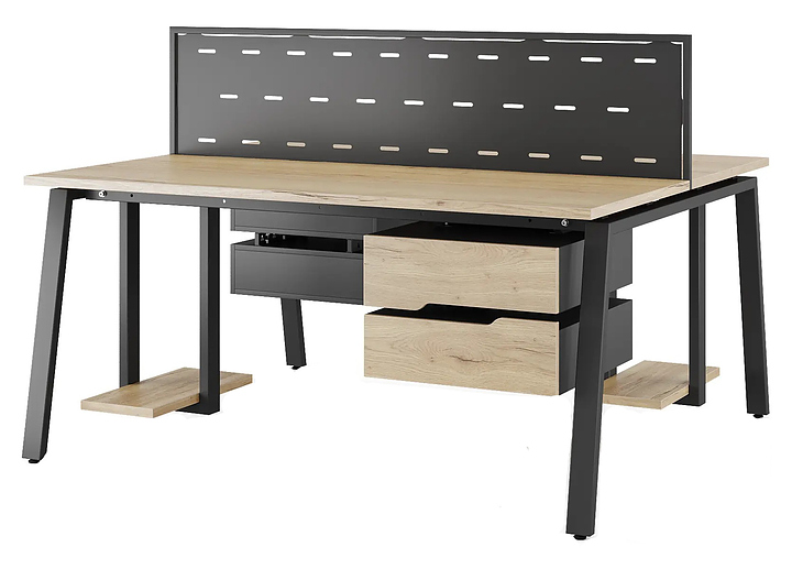 Офисный стол Кобор Стол A/2-100/160 black/natural используется в офисных помещениях и кабинетах руководителей. Модель оснащена А-образными опорами. Каркас выполнен из металла, выкрашенного в цвет черный муар (RAL9005) , столешница – из ламинированной древесно-стружечной плиты (ЛДСП) цвета дуб натуральный (H1180 ST37). Дополнительные характеристики: