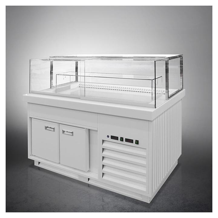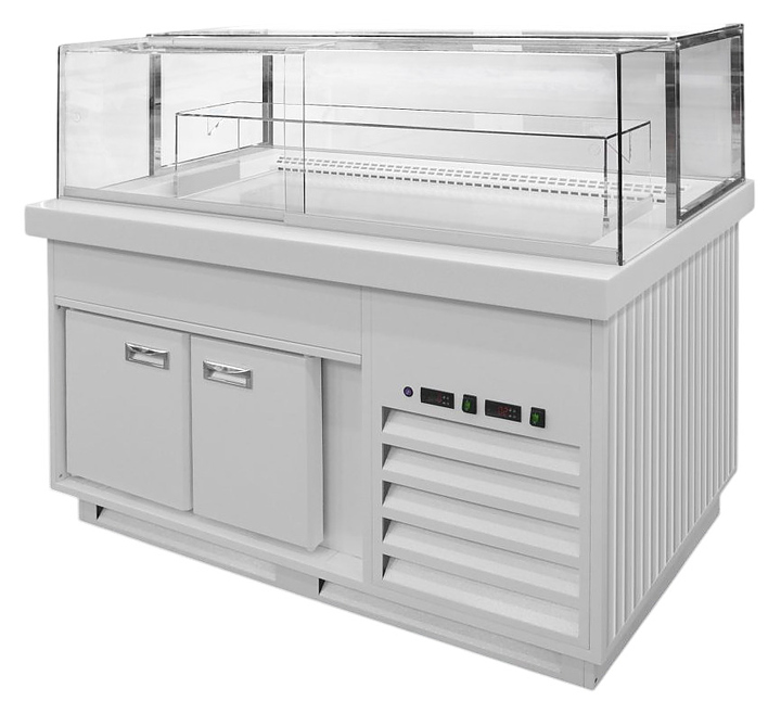 Кондитерская витрина Finist Maria MW-19-9 предназначена для экспозиции и временного хранения десертов, выпечки, кондитерских изделий, требующих определенный температурный режим +5…+10°С. В стандартном оснащении комплектуется боковыми стеклами и фасадами. Выкладка десертов осуществляется на выдвижную стеклянную полку и столешницу. Материал столешницы дерево (лак). Особенности: