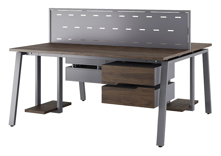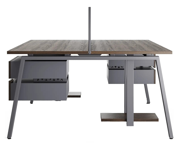 Офисный стол Кобор A/2-180/160 graphite/charlston используется в офисных помещениях и кабинетах руководителей. Модель оснащена А-образными опорами. Каркас выполнен из металла, выкрашенного в цвет графит муар (RAL7024), столешница – из ламинированной древесно-стружечной плиты (ЛДСП) цвета дуб чарльстон (H3154 ST36). Дополнительные характеристики: