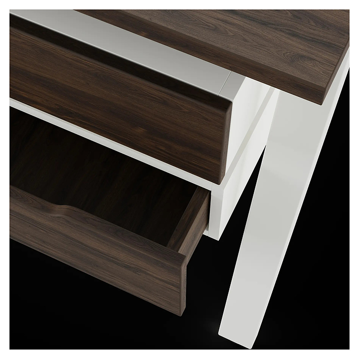 Офисный стол Кобор A/2-140/140 white/charlston используется в офисных помещениях и кабинетах руководителей. Модель оснащена А-образными опорами. Каркас выполнен из металла, выкрашенного в цвет белый муар (RAL9016), столешница – из ламинированной древесно-стружечной плиты (ЛДСП) цвета дуб чарльстон (H3154 ST36). Дополнительные характеристики: