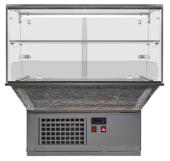 Встраиваемая холодильная витрина ТехноБалт Тикси DROP-IN 600х550х400 используется на предприятиях общественного питания и торговли для охлаждения, демонстрации и кратковременного хранения продуктов, напитков и готовых блюд. Модель оснащена 2 дверьми-купе со сторона продавца, полкой и светодиодными светильниками. Безрамочный купол и полка выполнены из закаленного стекла, двери-купе - из акрилового стекла, дно витрины в демонстрационной зоне - из нержавеющей стали AISI 304. Особенности: