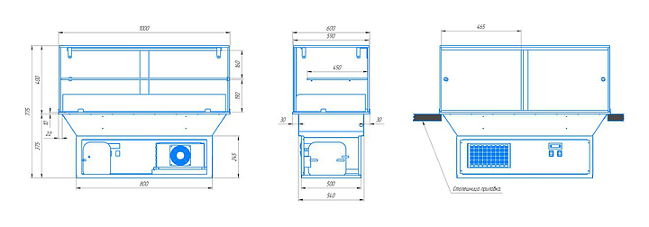 Витрина холодильная встраиваемая ТехноБалт Тикси DROP-IN 1000х600х400 мм