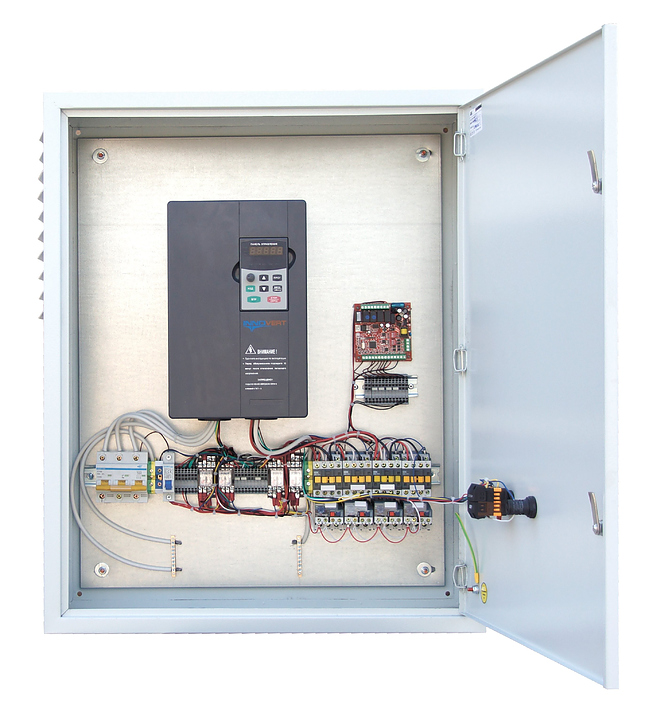 Блок управления с преобразователем частоты Тепломаш КЭВ-БУК-900-CA используется для управления промышленными завесами серий 800 без источника тепла. В комплект поставки входит Блок управления КЭВ-БУК-900-CA, накладной датчик температуры NTC10k Особенности: