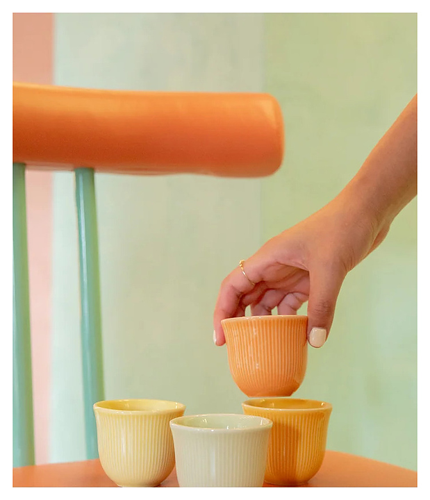 Чашка Loveramics Brewers Embossed Tasting Cup Latte C099-35BTP 250 мл для кофе, подходит для латте/капучино. Отсутствие ручки придаёт эстетическую изысканность и способствует более тесному контакту с напитком. Доступны в разных размерах: для эспрессо 80 мл, флет-уайт на 150 мл, латте/капучино на 250 мл. Изготовлена из прочного и долговечного фарфора, поверхность которого вручную покрывается глазурью, что придает каждому предмету индивидуальность. Особенности: