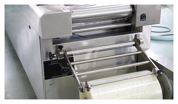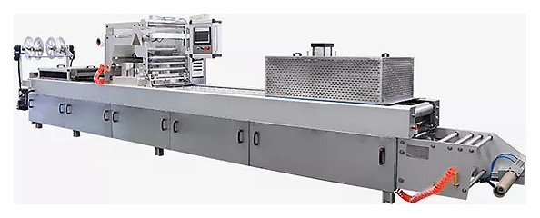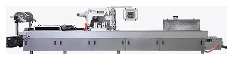 Автоматическая термоформовочная машина Hualian HVR-520A используется на производственных площадках, предприятиях пищевой промышленности, общественного питания и торговли для формования из мягких типов пленки лотков, с последующим вакуумированием, запайкой и обрезкой краёв плёнки с лотков готовыми блюдами, полуфабрикатами, фруктами и другой пищевой продукцией. Оборудование также используется для упаковки медицинских изделии (шприцы, медицинские наборы и т.д.). Модель оснащена панелью управления с сенсорным экраном. Корпус выполнен из нержавеющей стали, основные компоненты машины - из нержавеющей стали или алюминиевого сплава, что соответствует гигиеническим и санитарным требованиям пищевого производства. Принцип работы: Верхняя и нижняя части упаковки используют эластичную плёнку, верхняя плёнка - композитную плёнку, нижняя плёнка - стрейч, сначала цепной транспортёр перемещает нижнюю плёнку в формирующую матрицу, растягивает нижнюю плёнку в узле формирования, затем в зоне формирования закладывается продукция, после этого отправляется в запаивающий узел, где сформированный лоток запаивается плёнкой сверху и вакуумируется (некоторые продукты вакуумируются на основе азота), также машина автоматически совершает горизонтальную и вертикальную обрезку для разделения сформированных упаковок. Особенности: