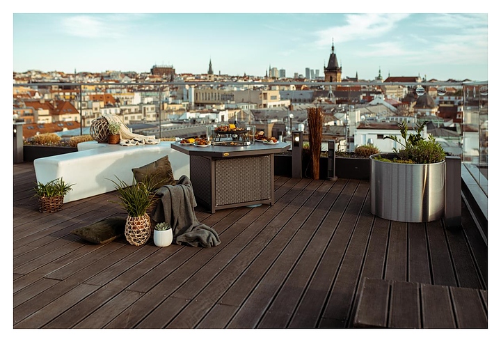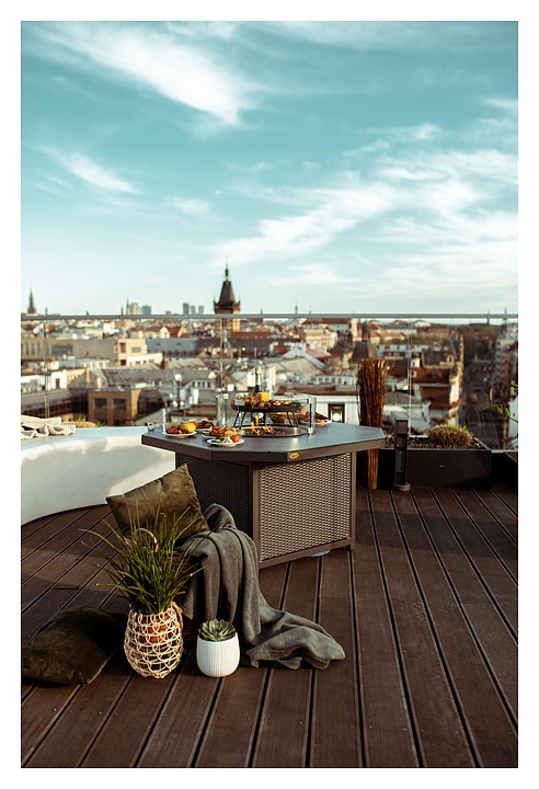 Газовый стол-камин Karma INFINITY Q PB предназначен для обогрева и поддержания комфортного микроклимата на открытых площадках и террасах загородных домов, кафе и ресторанов, в зонах отдыха пансионатов и санаториев. Оборудование является источником света для создания уютной вечерней атмосферы, а также может использоваться в качестве обеденного стола. Модель оснащена термостатом. Стол-камин работает на сжиженном газе. Сковорода-гриль выполнена из чугуна. В комплект поставки входят ветрозащитный экран, сковорода гриль с подставкой и лавовые камни. Дополнительные характеристики: