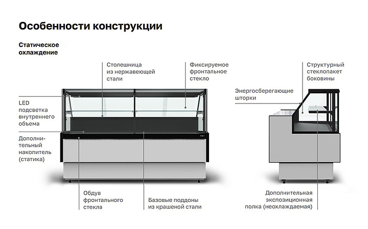 Холодильная витрина Carboma 2 GC85 SV 1,25-1 версия 2.0 используется на предприятиях общественного питания и торговли для охлаждения, кратковременного хранения, демонстрации и продажи продуктов питания, салатов, молочных и других гастрономических изделий. Модель оснащена системой защиты стекла от запотевания, экономичным и производительным компрессором и демонстрационной поверхностью черного цвета, служащей эффектным фоном для выложенных товаров. В комплект поставки входит передняя панель и боковина со стеклопакетом, толщиной 35 мм Особенности