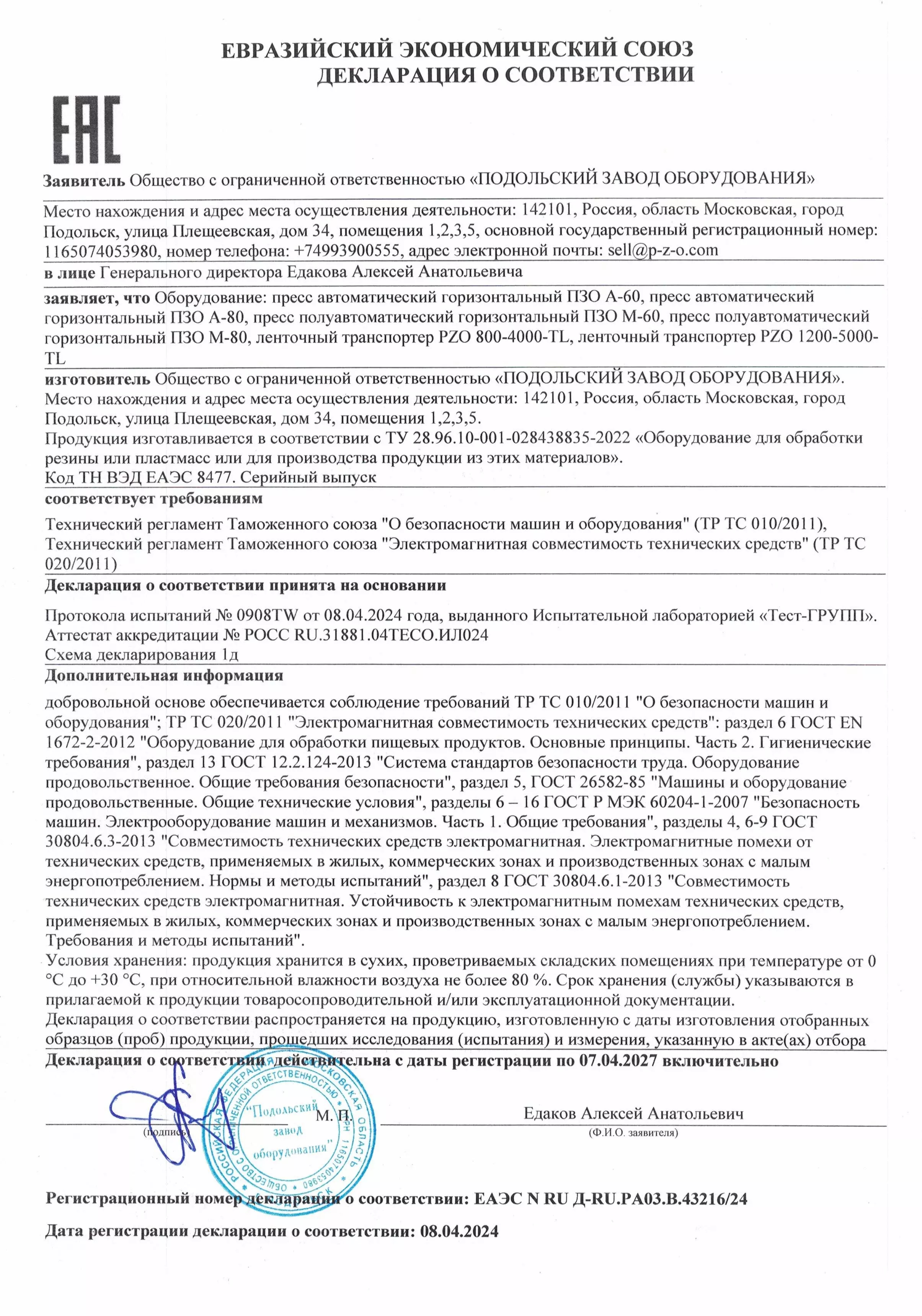Пресс гидравлический горизонтальный ПЗО А60 автоматический
