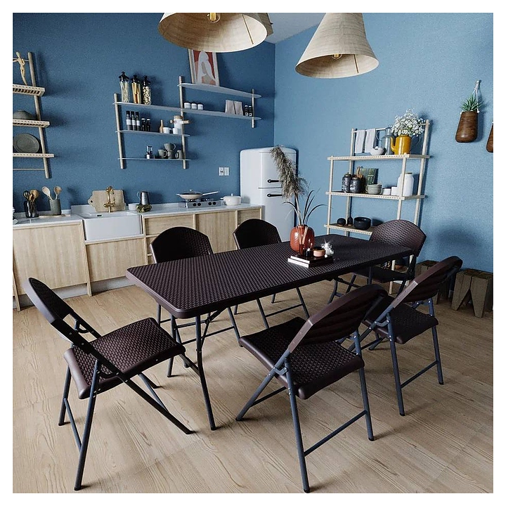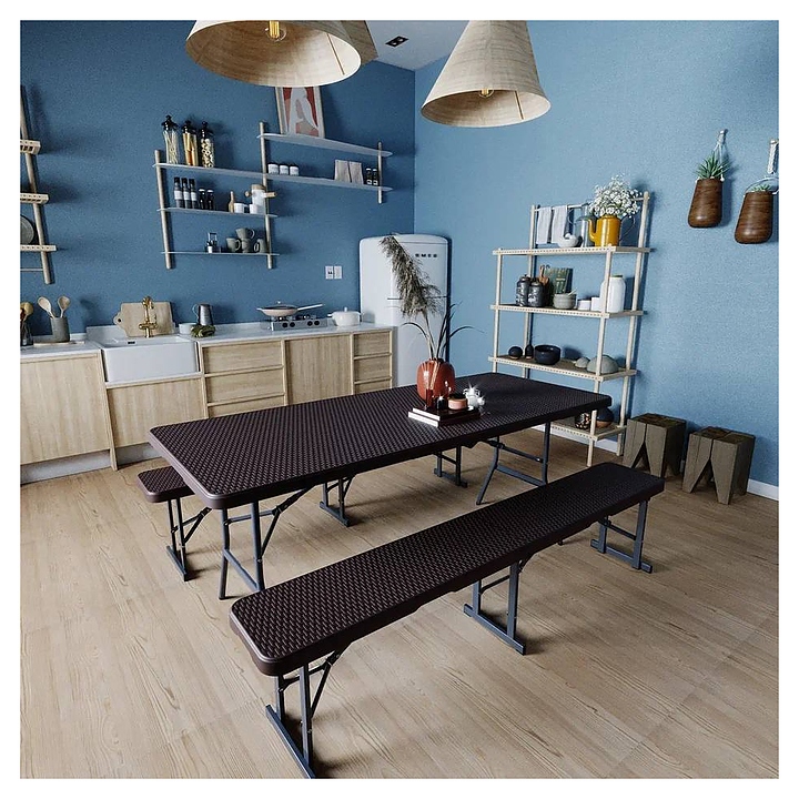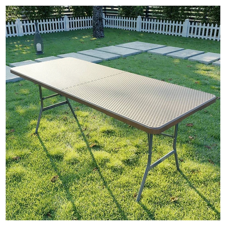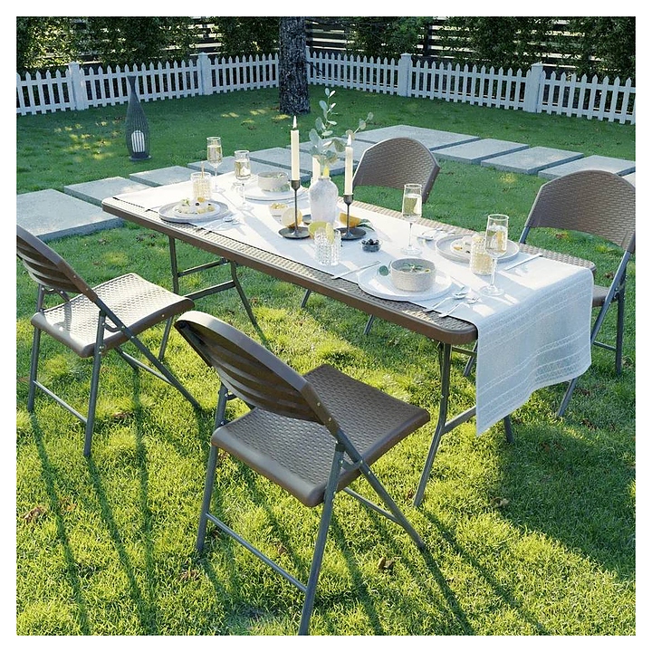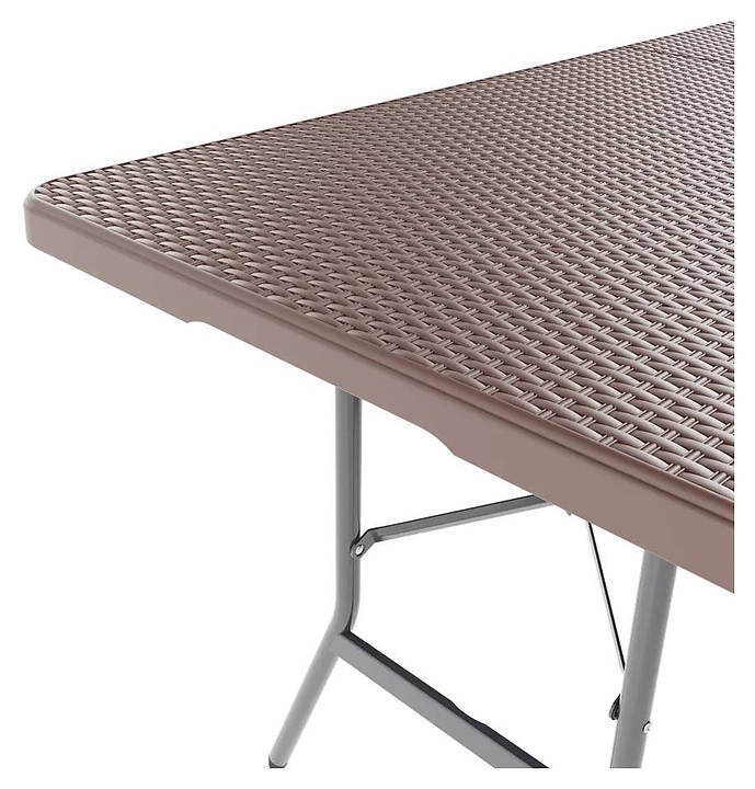 Складной стол Samman Vän R предназначен для использования на выездных мероприятиях, форумах, кейтеринге, а также на даче и дома. Модель оснащена ручкой для переноски. Каркас выполнен из стальной трубы, покрытой порошковой краской, столешница - из полипропилена с имитацией под ротанг. Особенности: