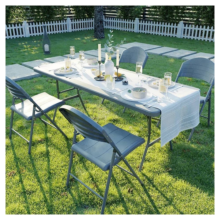Складной стул Samman Vän T предназначен для использования на выездных мероприятиях, форумах, кейтеринге, а также на даче и дома. Каркас выполнен из стальной трубы, покрытой порошковой краской, сиденье и спинка - из полипропилена с имитацией под дерево. Особенности: