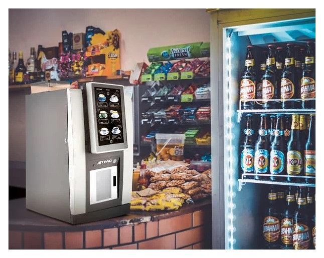 Комемашина Jetinno JL28-ES5C-14-C80 (J) предназначена для приготовления и продажи эспрессо на основе зернового кофе и различных горячих напитков на предприятиях общественного питания и торговли. Модель оснащена сенсорным 14-дюймовым экраном, встроенной кофемолкой Jetinno, 2 миксерами для сухих ингредиентов и системой автоматической выдачи стаканов. В комплект поставки входят: бункер для зерна, 4 бункера для растворимых ингредиентов, бункер для сбора кофейного жмыха, каплесборник и помпа для работы от бутилированной воды. Особенности: